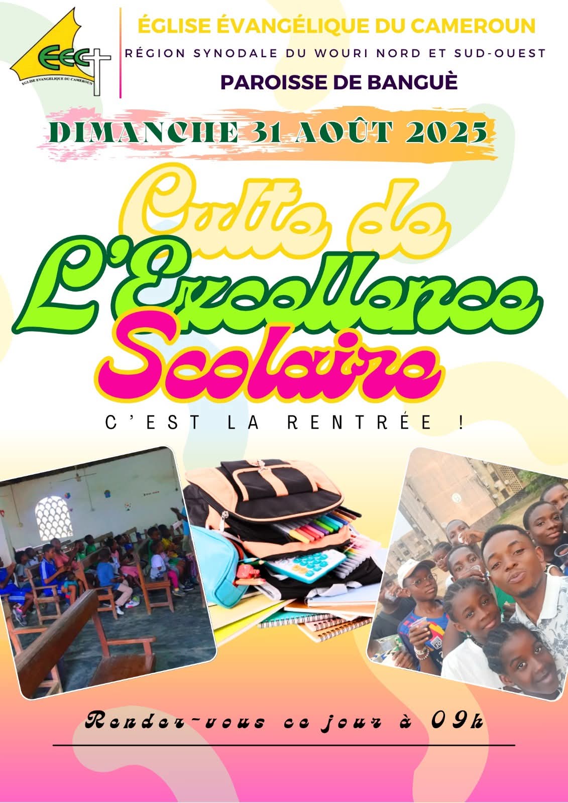 Le dimanche 31 août 2025, la Paroisse de Banguè vibrera au rythme de la reconnaissance et de l’encouragement à travers un culte solennel dédié à l’excellence scolaire.