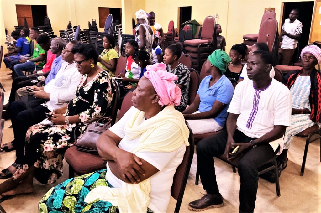 Le Pasteur-initiateur-Daniel-Yonli ( au premier rang en-chemise-rouge carrelée.) et fidèles ont suivi avec intérêt l’enseignement