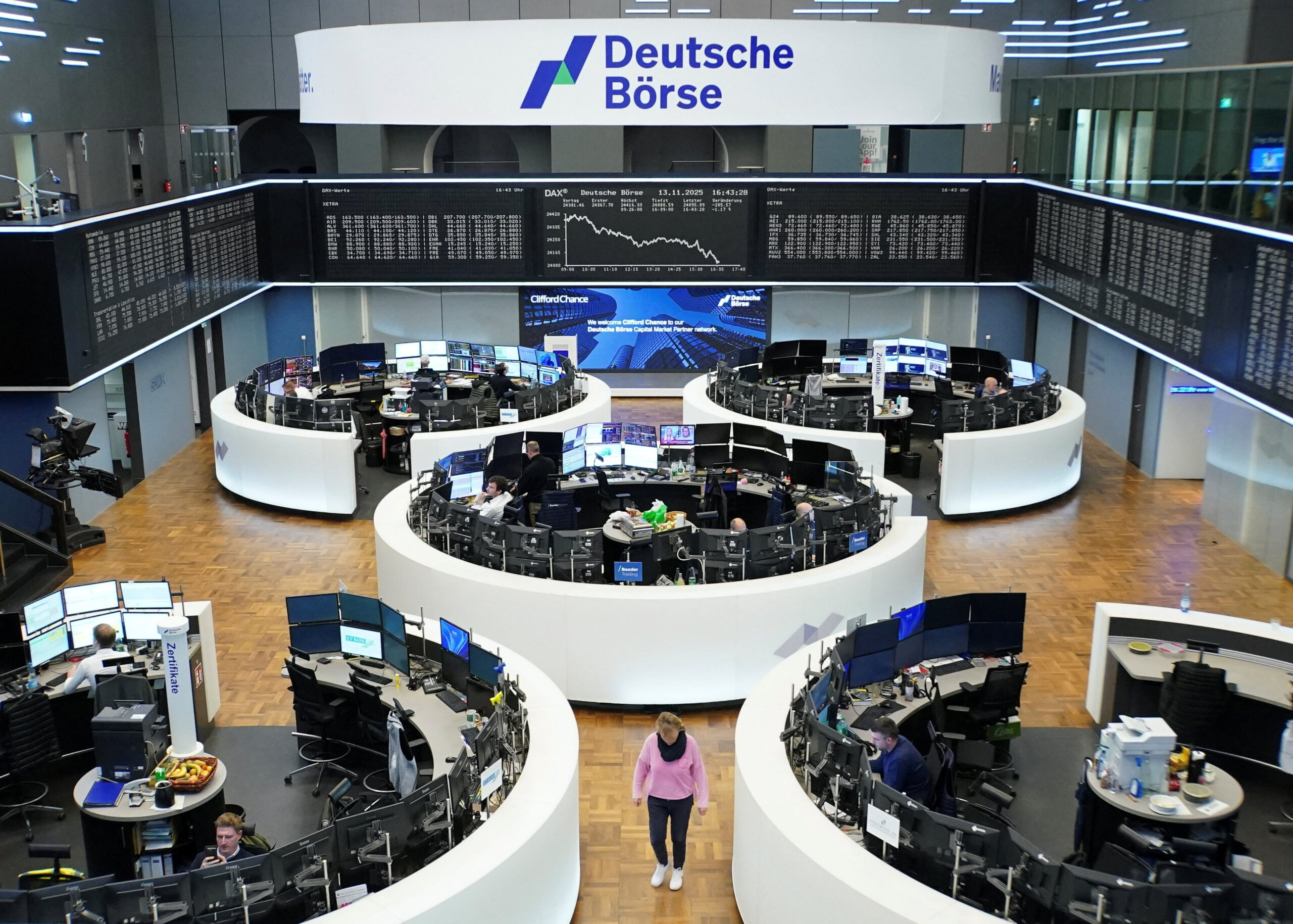 (Reuters) – Les principales Bourses européennes reculent en début de séance vendredi, le soulagement relatif des investisseurs sur la fin progressive du « shutdown » aux Etats-Unis n’ayant pas compensé les inquiétudes sur les valorisations des géants de la « tech » et la modération des attentes concernant l’assouplissement de la politique monétaire de la Réserve fédérale américaine (Fed).