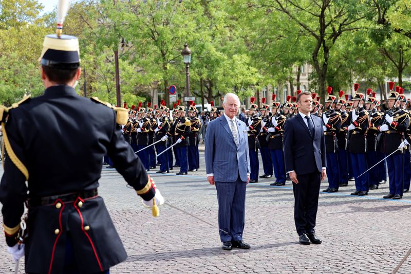 PARIS (Reuters) – Le roi Charles III a entamé mercredi une visite de trois jours en France au cours de laquelle il doit notamment rencontrer le président Emmanuel Macron à l’Elysée puis dîner au château de Versailles, avant un discours prévu jeudi au Sénat et un déplacement vendredi à Bordeaux.