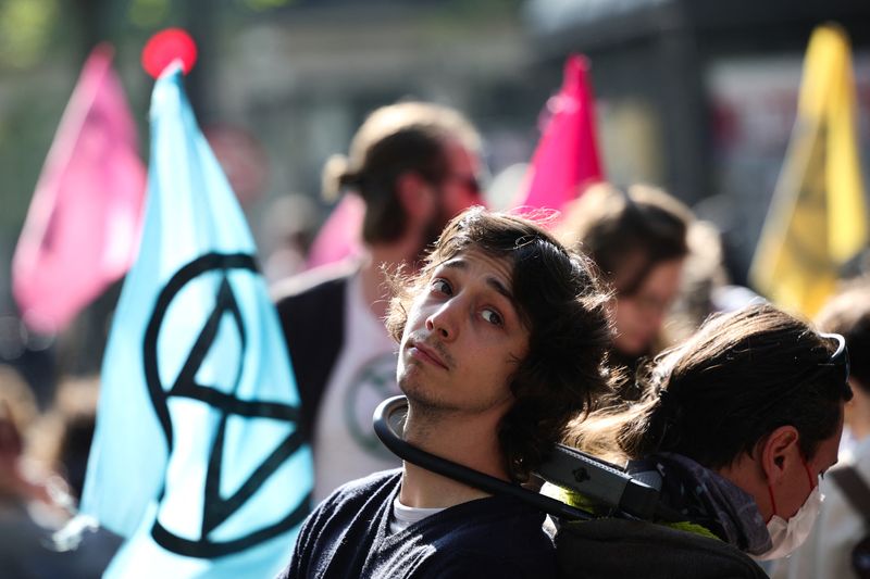 PARIS (Reuters) – Des militants du groupe écologiste Extinction Rébellion ont bloqué samedi un boulevard parisien pour protester contre les programmes environnementaux présentés par les candidats à la présidence française.