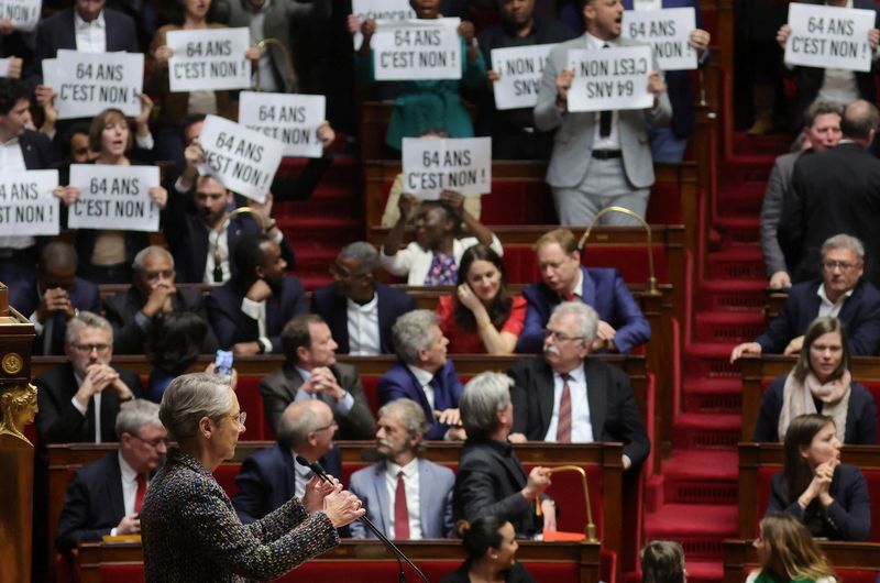PARIS (Reuters) – Le gouvernement s’est résolu jeudi à recourir à l’article 49.3 de la Constitution pour faire adopter sans vote sa réforme des retraites, faute d’être assuré d’obtenir une majorité sur le texte à l’Assemblée nationale, déclenchant un tollé dans l’hémicycle et une vague de protestations parmi les opposants au projet.