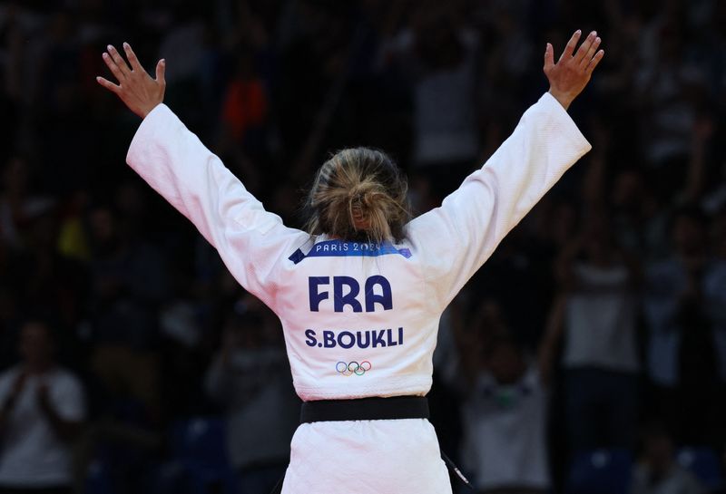 PARIS (Reuters) – La judokate Shirine Boukli a décroché samedi la première médaille de l’équipe de France aux Jeux olympiques de Paris 2024 en remportant le bronze dans la catégorie des moins de 48 kg.
