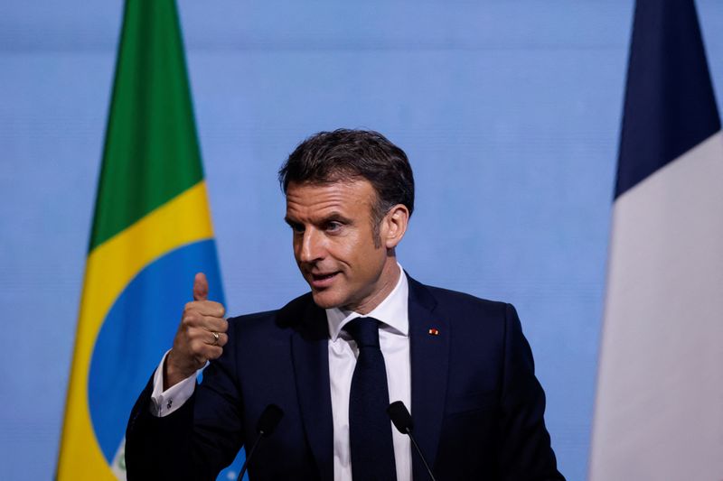 (Reuters) – Le président français Emmanuel Macron a salué mercredi lors d’une visite au Brésil une « nouvelle page » des relations entre les deux pays, évoquant une « amitié » et « un destin commun », qu’il s’agisse de lutte contre le changement climatique, d’industrie de la défense ou encore d' »aventures spatiales ».
