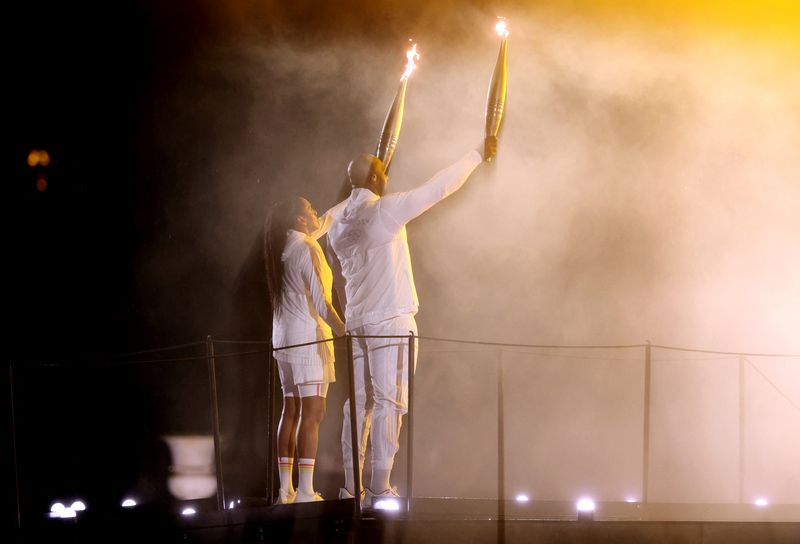 PARIS (Reuters) – Le Jeux olympiques de Paris 2024 ont officiellement débuté vendredi, à l’issue d’une parade sur la Seine couronnée par l’allumage de la vasque par Marie-José Pérec et Teddy Riner puis l’interprétation par Céline Dion de « L’Hymne à l’amour » depuis la tour Eiffel.