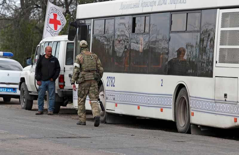 KYIV (Reuters) – Le conseil municipal de Marioupol a déclaré lundi que des autocars destinés à permettre à des civils de quitter la ville n’avait pas encore atteint le point de rendez-vous avec les candidats à l’évacuation, contrairement à de précédentes déclarations d’un responsable local annonçant que le convoi avait déjà quitté la ville.