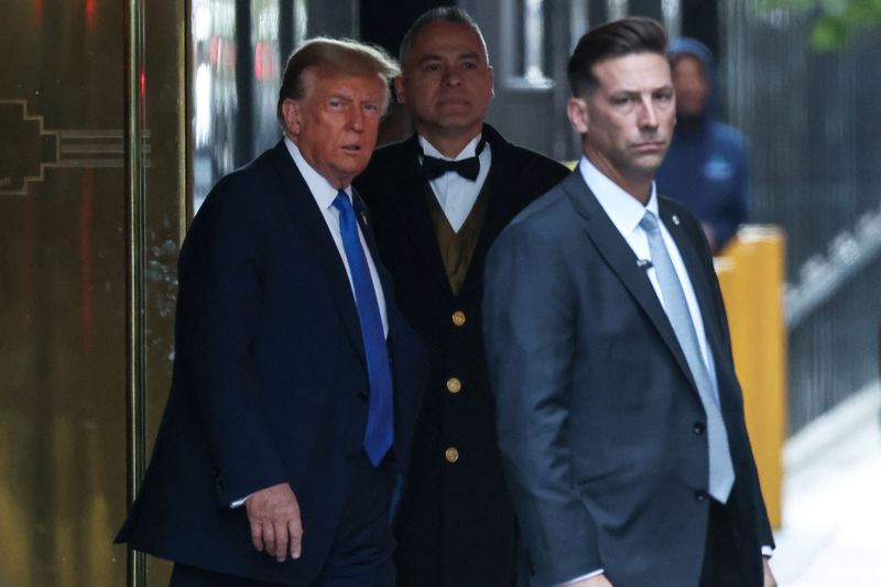 NEW YORK (Reuters) – Donald Trump a appelé lundi ses partisans à manifester pacifiquement alors que s’ouvre son procès pénal à New York, qui constitue une première pour un ancien président américain.