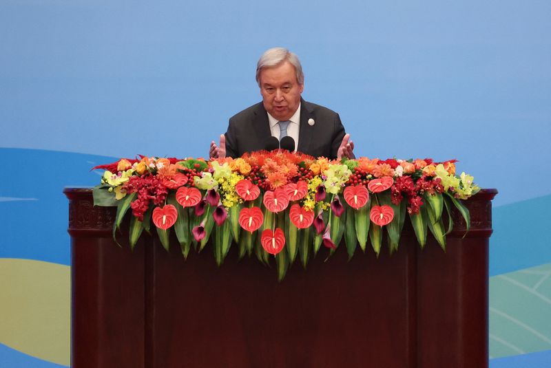 PEKIN (Reuters) – Le secrétaire général des Nations unies, Antonio Guterres, a dit mercredi être « horrifié » par les centaines de personnes tuées la veille dans une frappe contre un hôpital de Gaza, déclarant que l’attaque du Hamas en Israël le 7 octobre ne pouvait justifier une « punition collective » de la population.