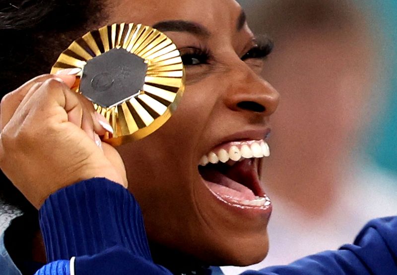 PARIS (Reuters) – Simone Biles a remporté jeudi le concours général individuel de gymnastique artistique aux Jeux de Paris, le sixième titre olympique de sa carrière, renouant avec la gloire trois ans après son forfait retentissant aux Jeux de Tokyo.