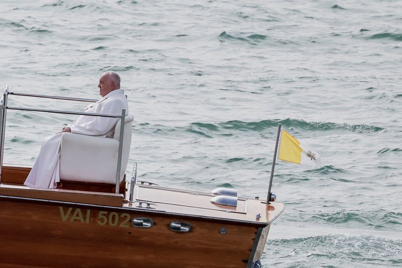 Affaibli depuis plusieurs mois par différents problèmes de santé, François a prononcé trois discours et une homélie au cours de cette visite de cinq heures dans la lagune de Venise, se déplaçant en fauteuil roulant, dans une voiturette et à bord d’une vedette.