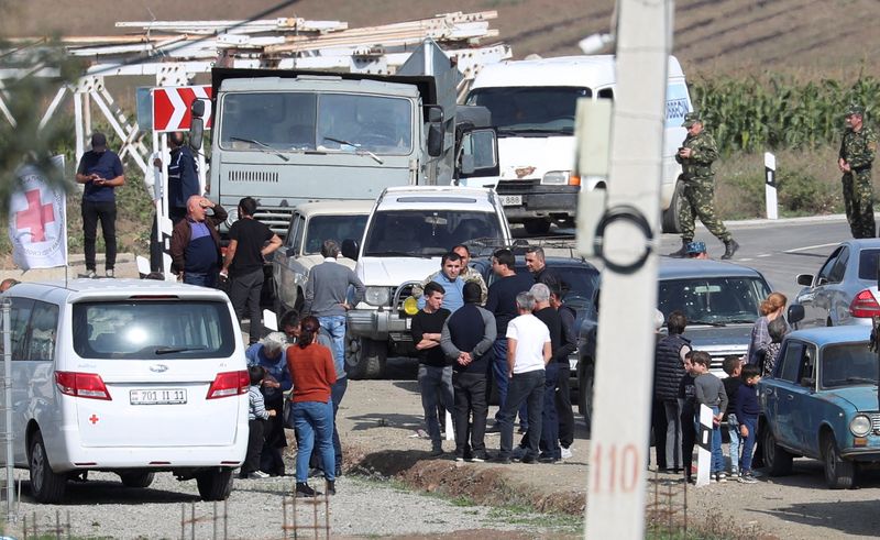Des reporters de Reuters ont vu plusieurs centaines de réfugiés ethniques arméniens en provenance du Haut-Karabakh dans la ville frontalière arménienne de Goris.