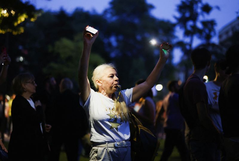 BELGRADE (Reuters) – Des dizaines de milliers de Serbes se sont rassemblés samedi à Belgrade pour manifester contre le gouvernement, accusé d’alimenter une culture de la violence après deux fusillades qui ont fait 18 morts début mai.