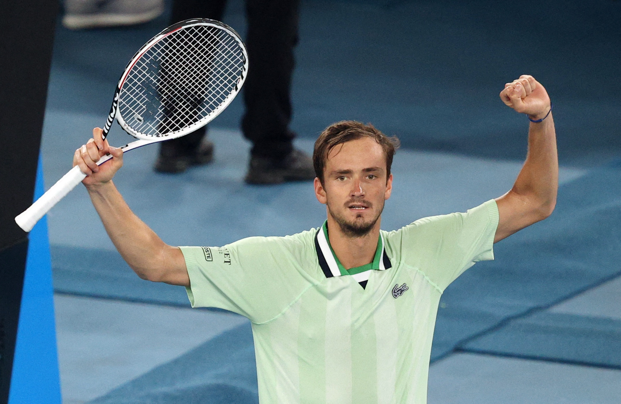 Au terme d’une rencontre sous haute tension, Daniil Medvedev s’en est sorti victorieux contre Stefanos Tsitsipas (7-6(5), 4-6, 6-4, 6-1). Le Russe est passé par tous les états mentaux, mais il a fait parler ses qualités physiques exceptionnelles pour étouffer le Grec dans les deux dernières manches. Grâce à ce nouveau succès, Medvedev se qualifie pour sa deuxième finale consécutive en Grand Chelem, sa deuxième d’affilée à Melbourne et la quatrième de sa carrière. En cas de victoire dimanche face à Rafael Nadal, l’actuel numéro deux au classement ATP pourra encore plus se rapprocher de la place de numéro un mondial, toujours en possession de Novak Djokovic.