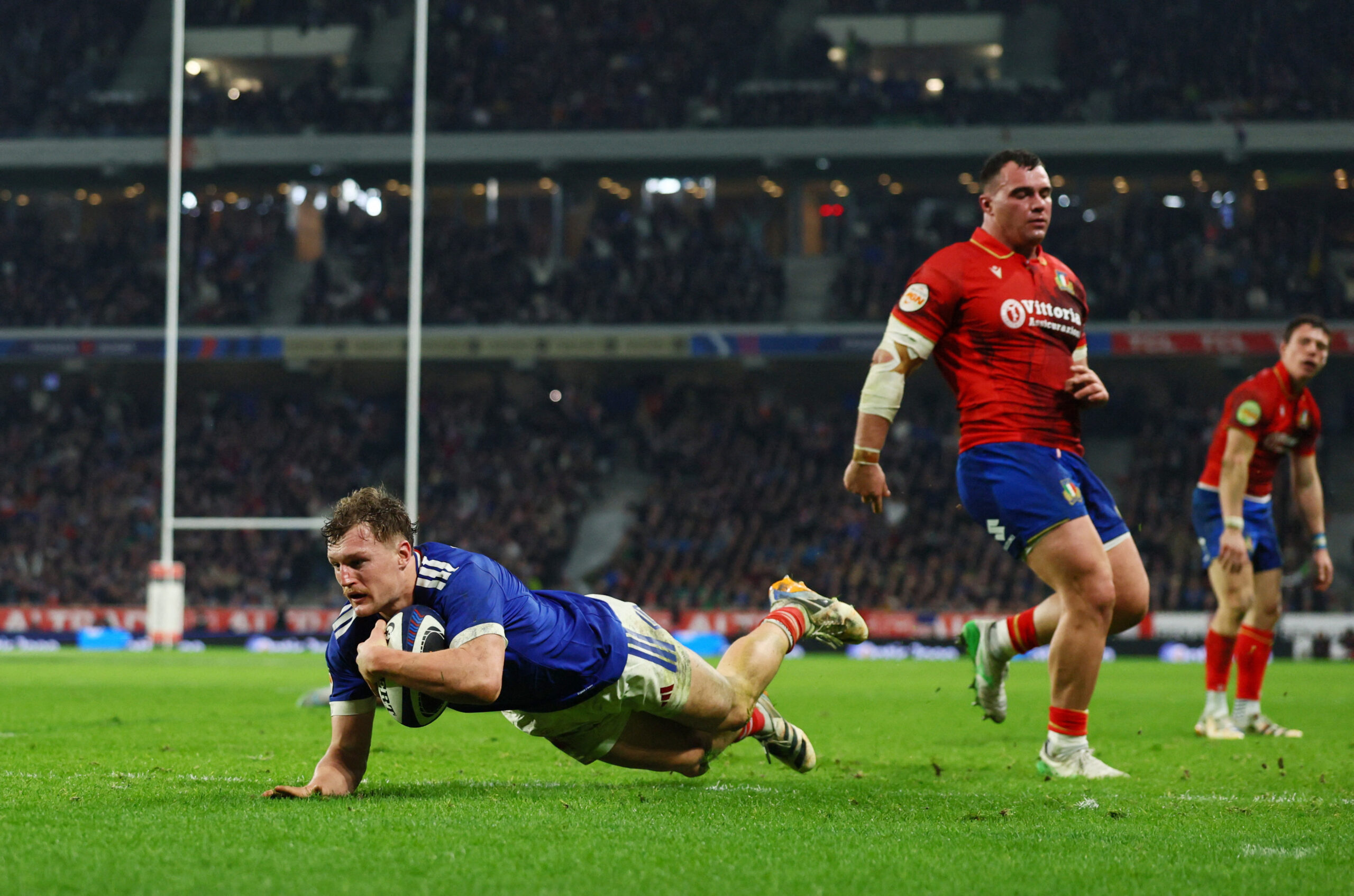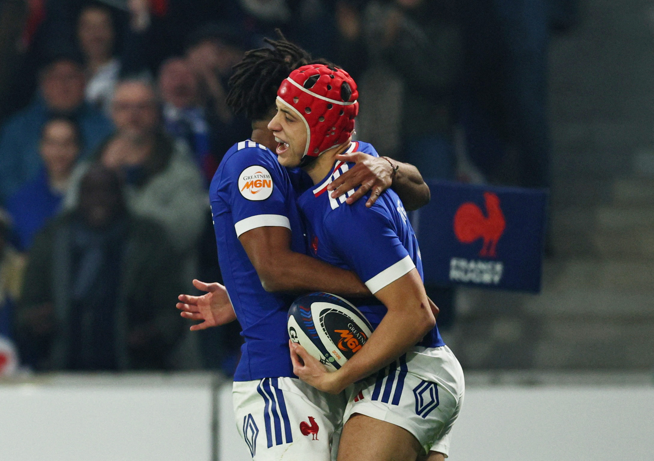 Emmanuel Meafou a doublé la mise, inscrivant son premier essai en sélection, tout en puissance et dans la continuité d’un 50:22 trouvé par Thomas Ramos, repositionné demi d’ouverture en l’absence de Matthieu Jalibert.
